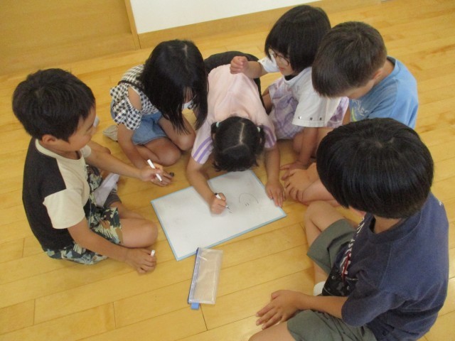 今日は2組が企画した「どんどん学年しゅう会」を行いました。1組・2組の合同チームで「箱の中身はなんでしょうゲーム」や「宝探しゲーム」を楽しみました。来週は1組が企画した学年集会を行う予定です。