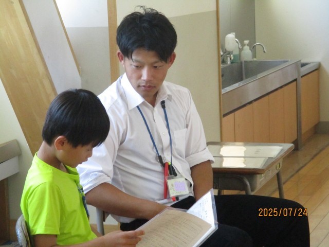 その後、夏休み中の注意事項を確認した子供たちは、担任から「あゆみ」を受け取り、1学期に頑張ってきたことや成果を振り返りました。
