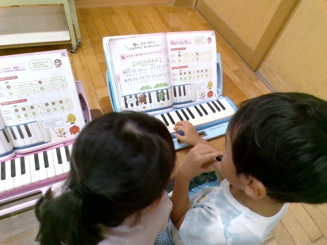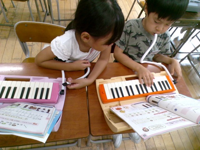 音楽科では、鍵盤ハーモニカを使った学習をしています。