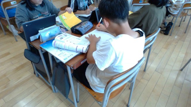 社会科の学習では、水産業のさかんな地域について学習しました。発表を聴き合い、考えたことをまとめていました。