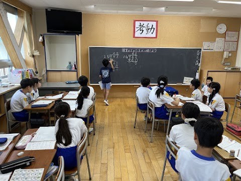 今日の算数科では、3けた÷3けたの割り算を学びました。子供たちは、今までの学習を基に筆算したり、けん算したりしながら一生懸命取り組みました。