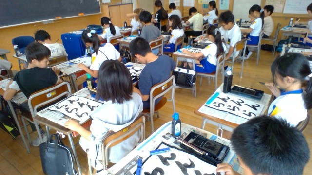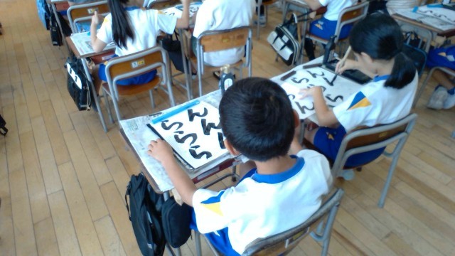 書写の学習では「らん」を練習しました。折れの筆づかいに気を付けて取り組みました。