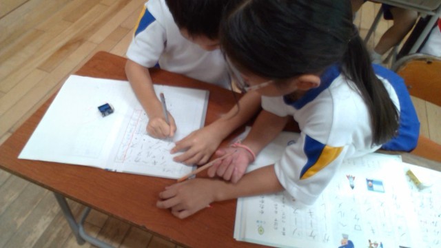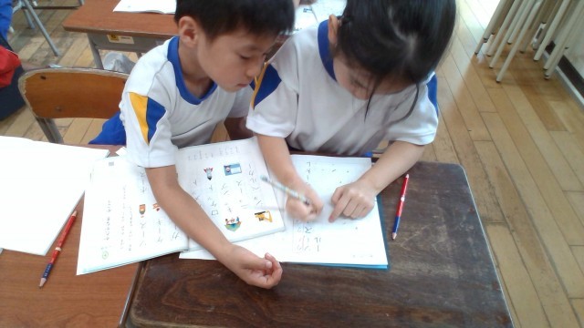 国語科「かたかなをかこう」の学習では、片仮名を読んだり、片仮名の表記の仕方に気を付けて書いたりしました。