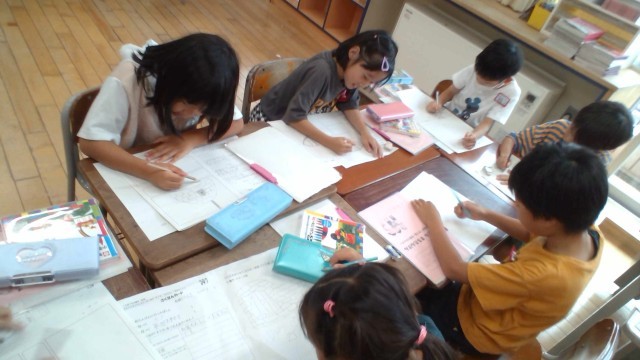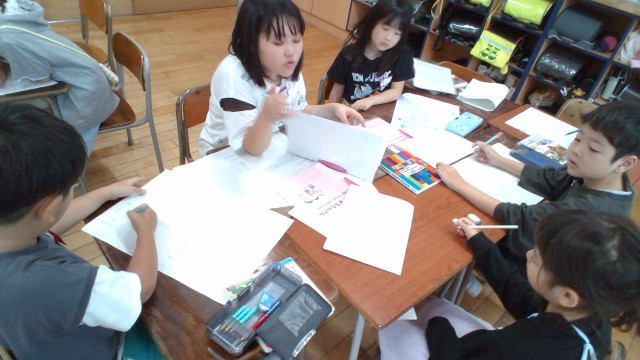 生活科の学習では、町探検で見付けた奧田の「すてき」を、クイズや新聞にしてまとめています。