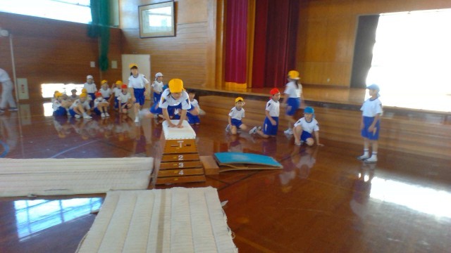 今日の体育科では、学習発表会に向けてマットや跳び箱運動を行いました。子供たちは、自分たちの演技がよりよいものになるように話し合い、自分の動きに取り入れていました。