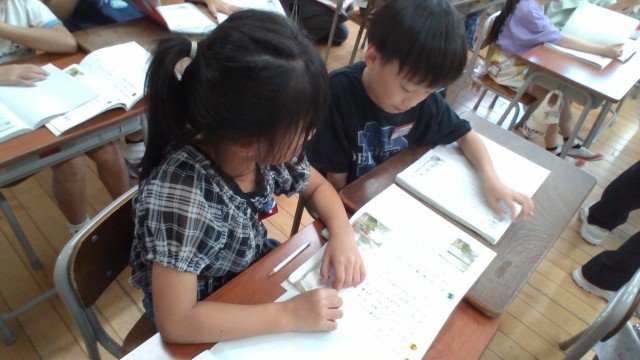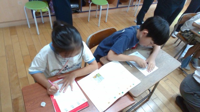 国語科の「お手紙」の学習は、自分と比べて、登場人物の気持ちや様子を想像しながら読んでいます。