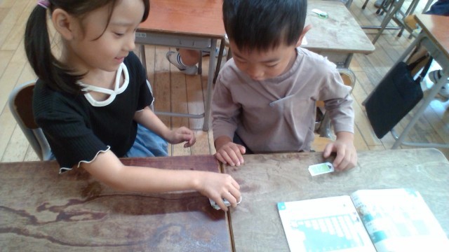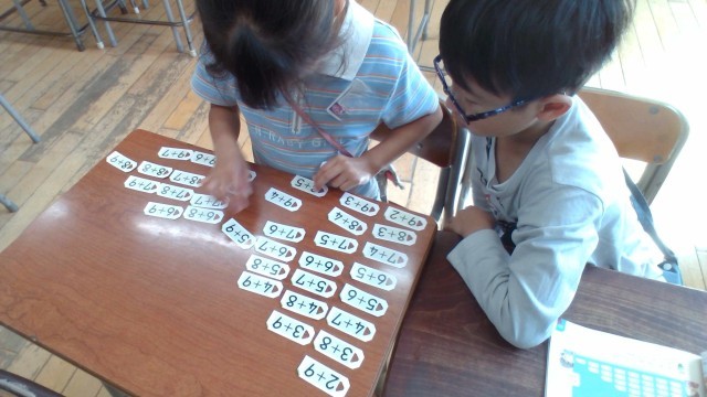 算数科では計算カードを使って問題を出し合ったり、数の並び方を見て気付いたことを聴き合ったりしました。