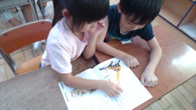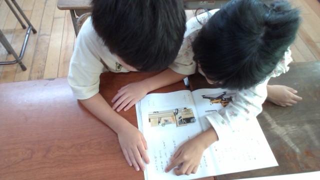 国語科「じどう車くらべ」の学習では、どんなことが説明してあるのかを読んで見付けていきました。