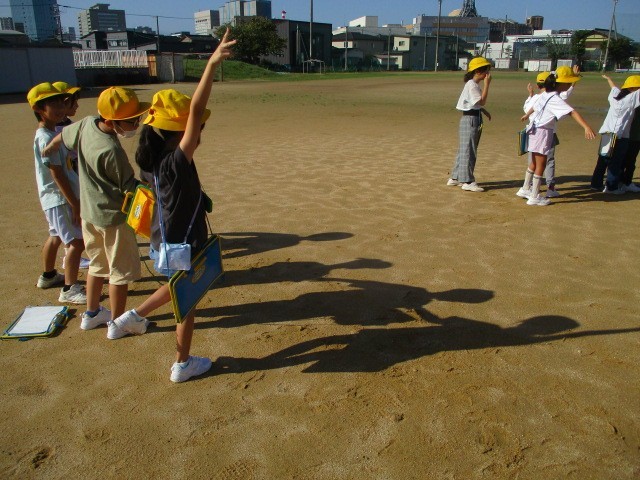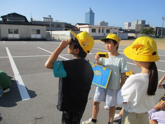 理科では、「太陽とかげ」の学習をしています。遮光プレートを使って太陽を見たり、太陽とかげの向きを確認したりしました。