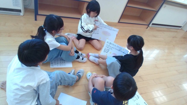 今日の生活科の学習では、町探検で見付けた奥田の「すてき」について、チームや学年全体で伝え合いました。