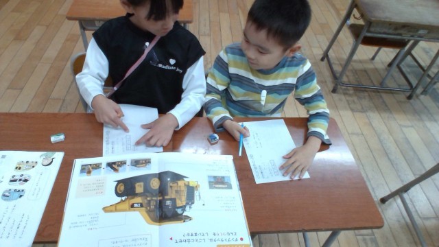 国語科「じどう車ずかんをつくろう」では、自分で選んだ自動車の「しごと」と「つくり」を確かめ、説明の順に気を付けて自動車図鑑を書きました。