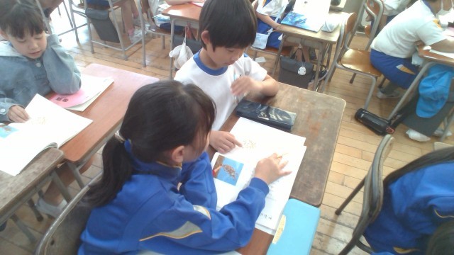 国語科では、「すがたをかえる大豆」の学習をしています。ペアさんと一緒に学び合う姿が見られました。