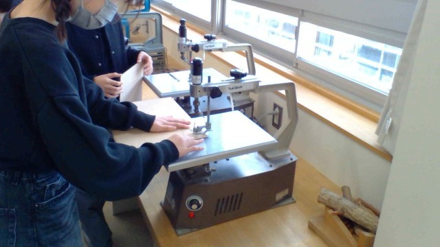 図画工作科では「糸のこすいすい」の学習をしています。糸のこの使い方に十分に注意しながら、デザインに沿って木を切りました。