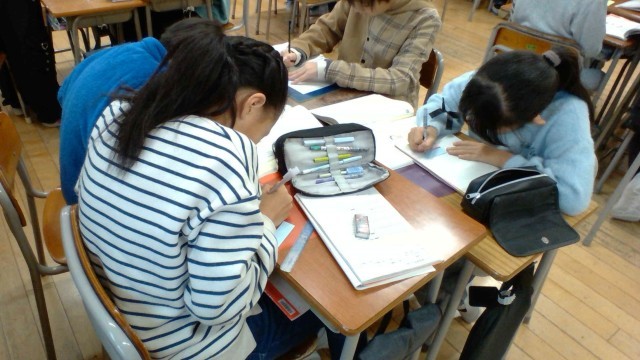 国語科「よりよい学校生活のために」では、たがいの立場を明確にして話し合うことを目標に学習しています。今日は、次の話し合いの時間に向けて議題に対する現状や解決方法などを考え、自分の考えを明確にしていました。