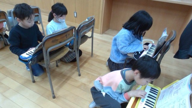 音楽科の学習では、正しい指遣いに気を付けて、「山のポルカ」を鍵盤ハーモニカで演奏しました。