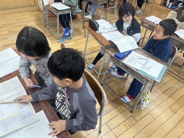国語科の「にたいみのことば、はんたいのいみのことば」の学習では、一つ一つの言葉に注目して、似た意味の言葉と反対の意味の言葉を見付けました。