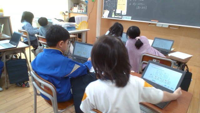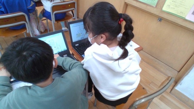 音楽科の「くりかえしをつかって 音楽をつくろう」の学習では、クロームブックでリズムカードを並び替えながら、お祭りの音楽をつくりました。