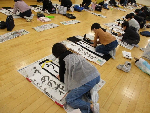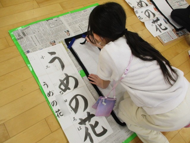 今日は書き初めの練習をしました。お手本をよく見ながら、真剣に書く姿が見られました。