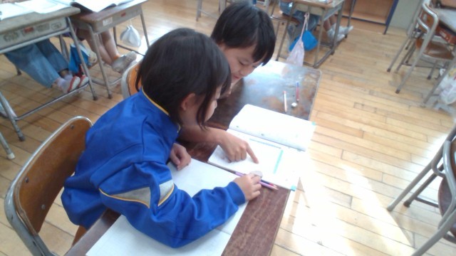 算数科の学習では、かけ算九九の表を見ながら、かけ算のきまりを使って問題に取り組みました。