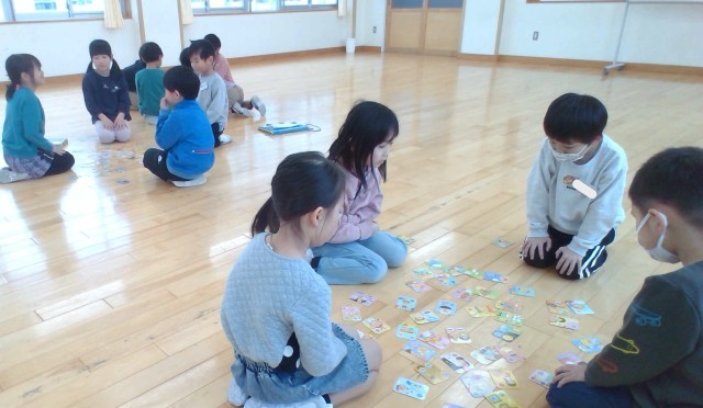生活科「むかしからのあそび」の学習では、かるた等、昔の遊びに挑戦しました。
