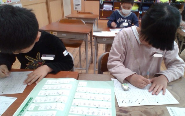 書写では「にているかん字とかたかな」を見付け、線の長さや向きに気を付けて書きました。