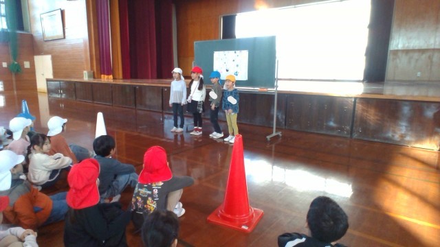 1年生 学年集会の様子:12月18日(木) 公開日 2025/12/18 更新日 2025/12/18 奥田っ子の様子 今日は2組が企画した「わくわく!みんなで楽しもう集会」があり、転がしドッジボールをしました。