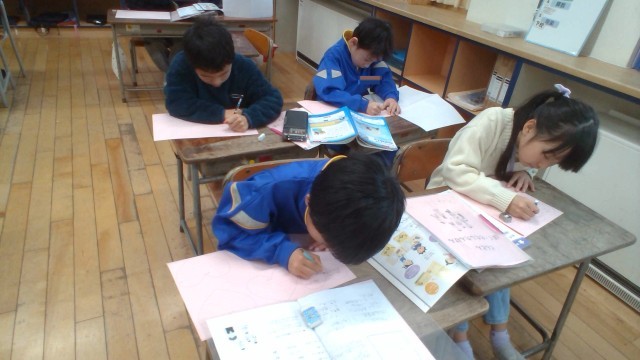 国語科の「すてきなところを つたえよう」の学習では、相手に思いが伝わるように内容や伝える順序を考えながら、同じ団の友達に手紙を書きました。