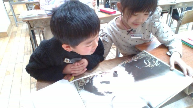 国語科「どうぶつの赤ちゃん」の学習では、教科書で読んだことをいかして、他の動物の赤ちゃんの本を読んで、分かったことを友達とまとめています。