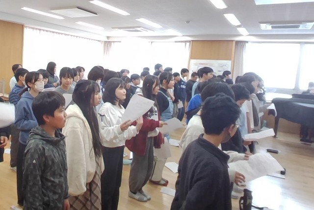 音楽科の学習では、合唱に取り組みました。それぞれのパートで練習した後に、学年全員で合わせました。どちらのパートもきれいな歌声を響かせていました。
