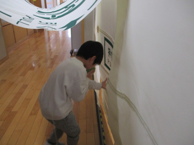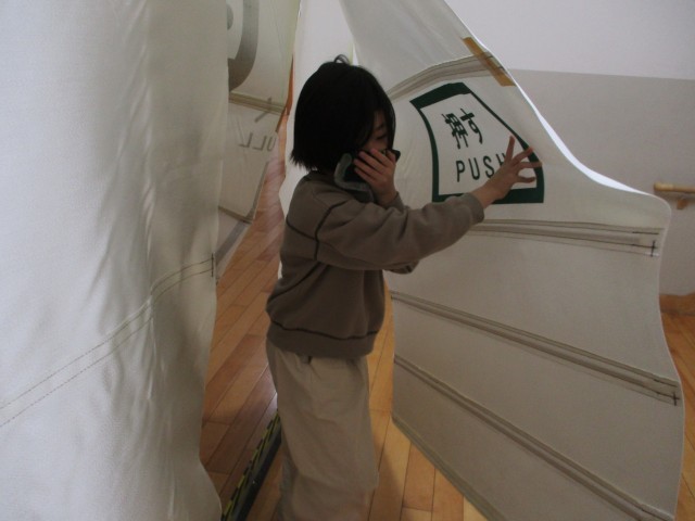 避難訓練では、防火シートや防火扉を通る避難の仕方を確かめました。