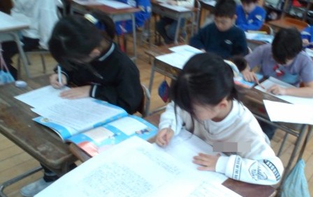 生活科の学習では、2年生でできるようになったことや、3年生で頑張りたいことについて、作文用紙にまとめました。