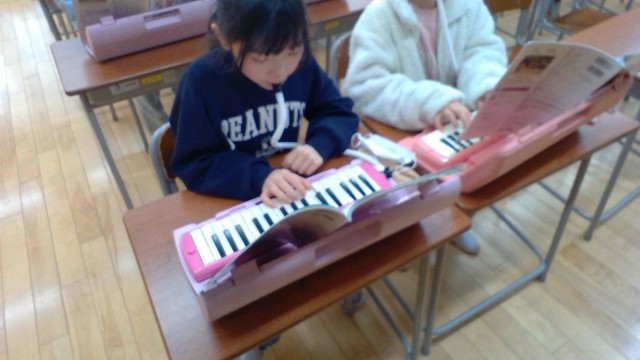 音楽科の学習では、指使いやリズムに気を付けながら「鉄わんアトム」の演奏に取り組みました。