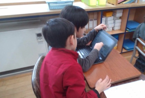 音楽科の「名前でせんりつあそび」の学習では、クロームブックを使って名前に合うリズムを選んだり、お気に入りの旋律をつくったりしました。
