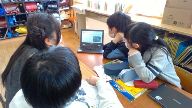 社会科では「環境を守るわたしたち」の学習をしています。鴨川の水質や美しい川を維持するための取り組みについて、調べたことを聴き合いました。