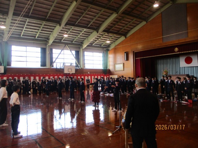 卒業式後、5,6年生で門出の式を行い、互いにエールを送り合いました。エールを通して感謝の気持ちを伝え合うことができました。