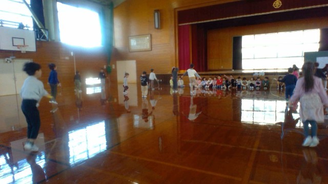 今日は2組が企画した「わくわく学年集会」で、縄跳び大会をしました。