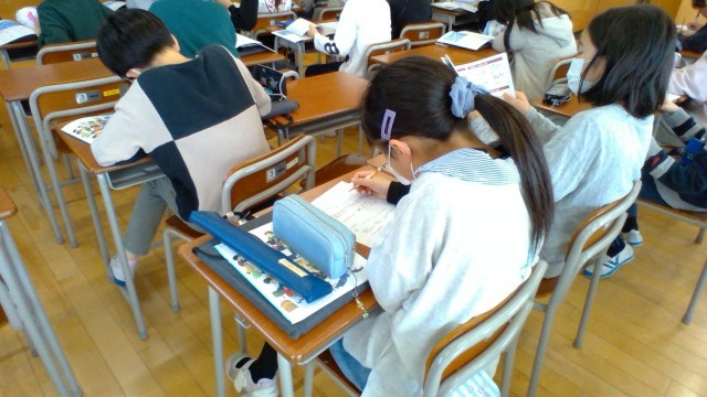 音楽科では「歌声をひびかせて、心をつなげよう」の学習をしています。曲の調や音符の確認をしました。
