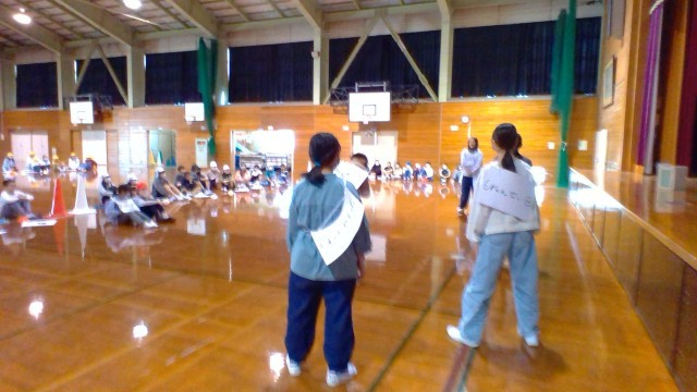 24日(金)に行う、入学お祝い集会に向けて準備をしています。どうしたら一年生が喜んでくれるかを考えながら練習しました。