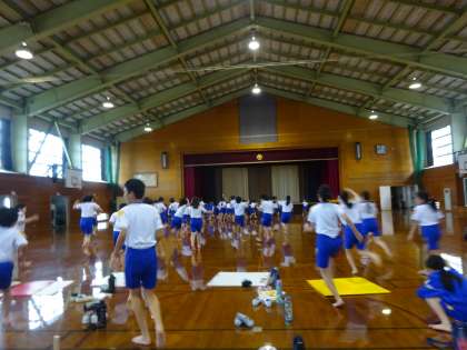 今日は、これまで取り組んできた表現運動の発表の日でした。1年2組の子供たちと、それぞれが表そうとしてきたイメージを出し切りました。1年生の表現した「おくだのもり」では、動物になりきった1年生を見て、「自分たちも!」と動物になりきって一緒に踊りました。真似をして一緒に表現することを我慢できないように飛び出していった子供たち。自分たちの体で何かを表現することを楽しむよさを感じているようです。