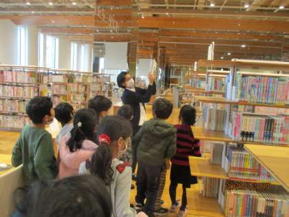 富山市立図書館では、図書館の利用の仕方を教えていただいたり、本の読み聞かせをしていただいたりしました。