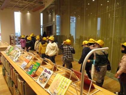 今日、2年1,3組が校外学習で富山市立図書館に行ってきた様子です。