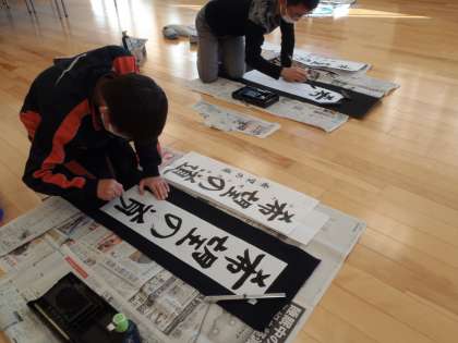 3学期の始業式後に行われる校内書初大会に向けて、練習を開始しました。6年生は「希望の道」と書きます。