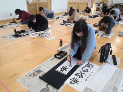 授業が終わると、「四字のバランスが難しい。次はもっとバランスよく書きたいな」「中心がずれてしまったから、今度は真っ直ぐになるようにしたい」等の会話が聞こえてきました。