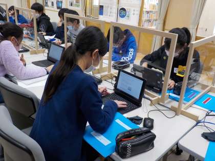 総合的な学習の時間では、「なりたい自分を目指して」というテーマで将来の夢につながる職業について調べています。「自分の興味があることは何か、どんな職業があるのか、その職業に就くにはどうしたらいいのか」等、一人一人が課題をもち、調べ学習に取り組んでいます。今の自分と向き合いながら真剣に学習に臨む子供たちです。