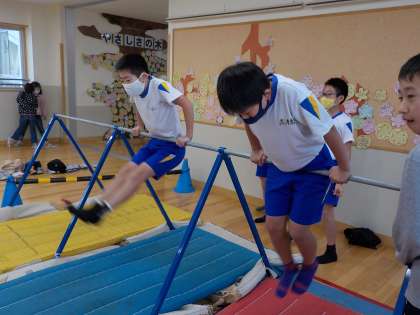 運動委員会による「GO TO 鉄棒キャンペーン」に参加している子供たちの様子です。運動委員会が逆上がりのコツ等、丁寧にアドバイスしてくれました。今年度はなかなか休み時間に体を動かすことが難しい状況ではありますが、委員会の企画のおかげで体を動かすことができ、楽しそうな子供たちでした。