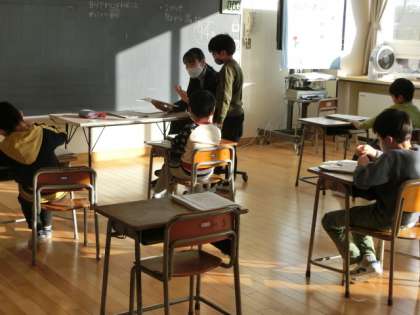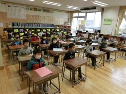 それぞれの教室では、子供たちは姿勢を正して、心を落ち着けて校長先生のお話を聞いていました。