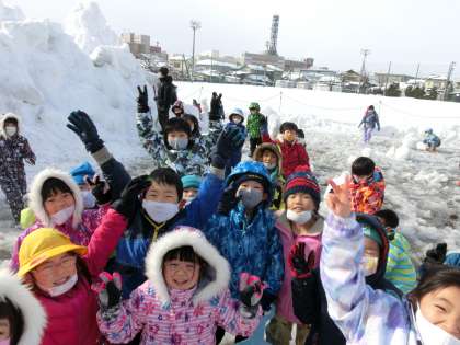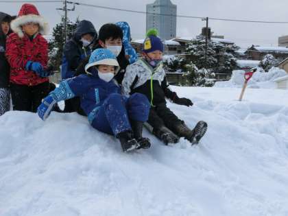 グラウンドで雪遊びをしました。ペアの友達と一緒に雪だるまをつくったり、雪山を滑ったりして楽しみました。子供たちから「雪だるまを重ねるときに、力を合わせて持ち上げて、もっとなかよしになれたよ」「転がるのって、こんなに楽しいんだ」という声が聞かれました。
