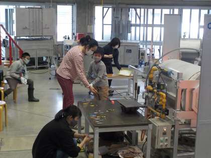 卒業記念ペーパーウエイト製作をしに、富山ガラス工房へ行きました。(2組は3日、3組は4日に行きます)