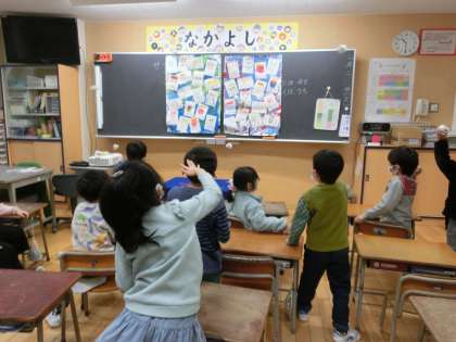 その後、「鬼は外!福は内!」と豆の代わりに紙を丸めた物を元気に投げました。
