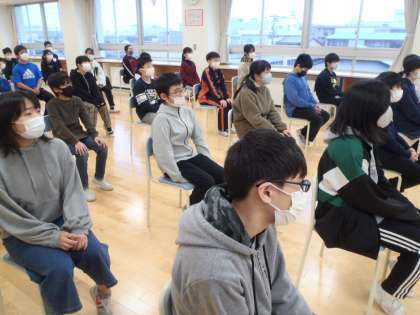 奥田中学校の先生が来校され、中学校生活について話をしてくださいました。生徒会の人たちが中学校生活について紹介するビデオを見たり、先生方の話を聴いたりしました。6年生が事前に質問していた「小学校生活と大きく変わること」や「入学までに身に付けておけばよいこと」、「部活の選び方や入ったら気を付けていかなければならないこと」等について、丁寧に答えてくださり、たくさんのことを学ぶことができました。